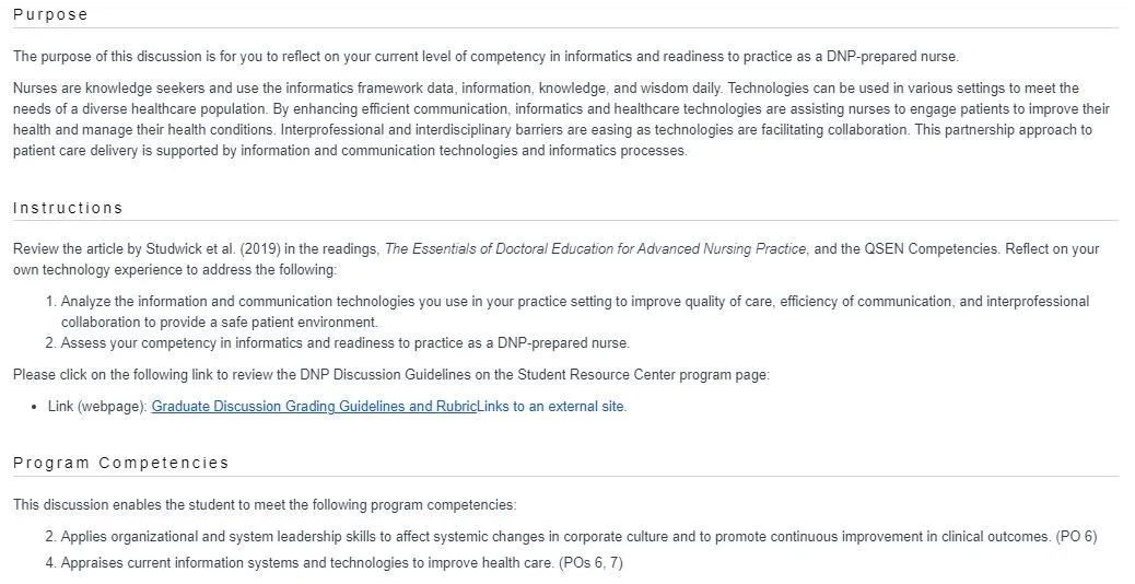 Please click on the following link to review the DNP Discussion Guidelines on the Student Resource Center program page:
